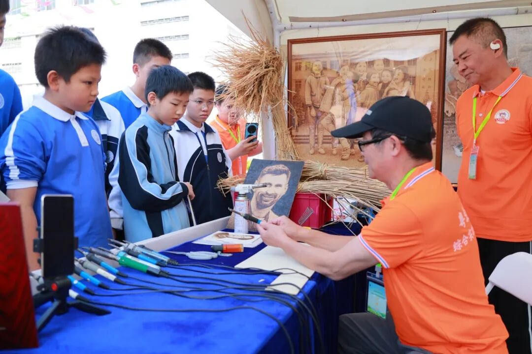 走進勞動教育成果展示與互動體驗區,傳統工藝與現代科技相映成趣。掐絲琺瑯、嶺南扎染等非遺項目展示區前排起長隊,無土栽培、AI養魚等科技項目同樣人氣爆棚。