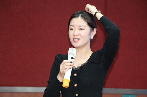 她重點講解了“敬”之師禮,深入淺出地向老師們介紹站姿、坐姿、走姿、手勢、行禮、路遇、登臺和回禮等禮儀常識,提出關于教師形象禮儀的專業建議。