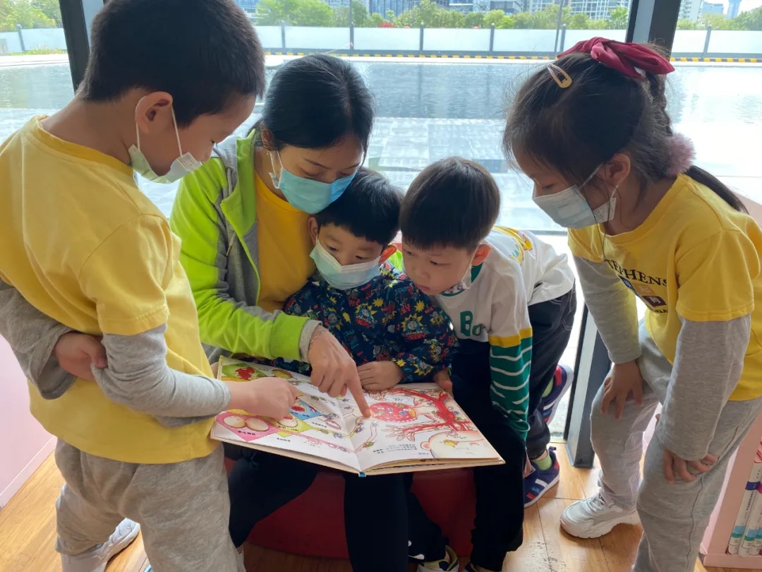 圖圖姐姐為小朋友們帶來了精彩的繪本故事分享,她用生動有趣的語言、繪聲繪色的引導孩子們投入到整個故事情節中,帶動了孩子們主動思考,積極舉手回答問題。